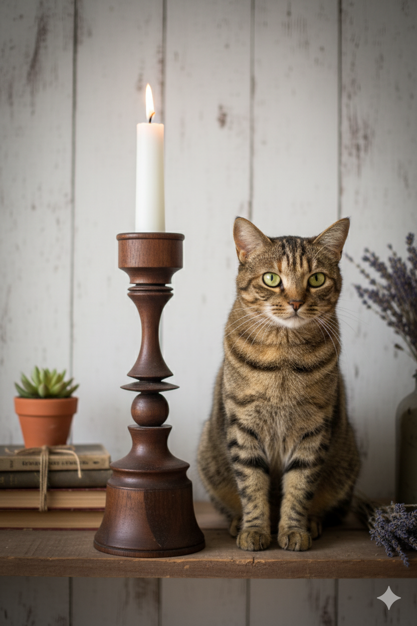 Com 31 cm de altura e 11 cm de diâmetro, ele carrega em si o toque humano e o encanto da luz que dança sobre a madeira.