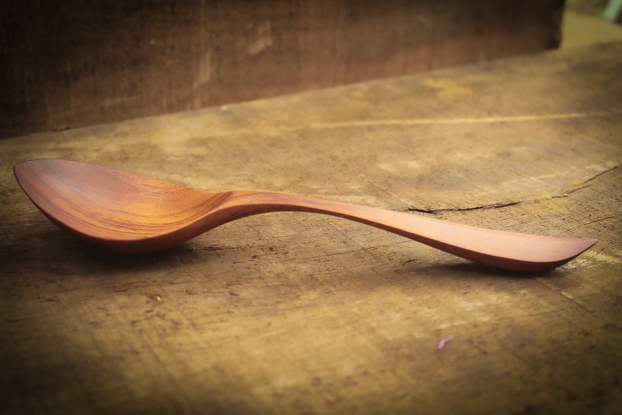 Com um desenho próprio , esta colher de madeira, pode ser usada na cozinha ou na mesa, pois é resistente ao calor e a umidade e também bonita para a mesa.